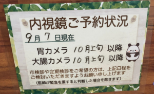 9/24現在の胃カメラ・大腸カメラのご予約状況をご案内致します。